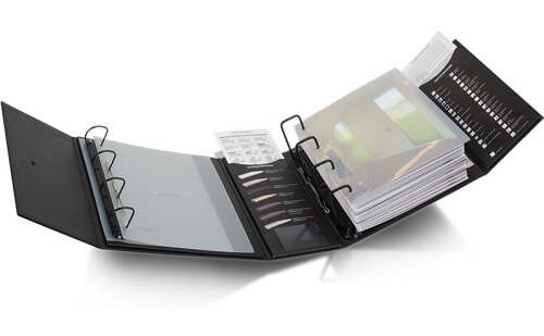 Папка може бути використана як обкладинка каталогу з роз’ємними металевими кільцями, на яких кріпиться друкована продукція. Роз’ємні кільця дозволяють вилучити з каталогу аркуші з неактуальною інформацією та замінити новинками. Папка може бути використана як демонстраційний каталог із зразками продукції.